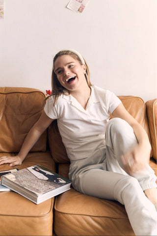 Sporty Collared Cotton Tee in Off White